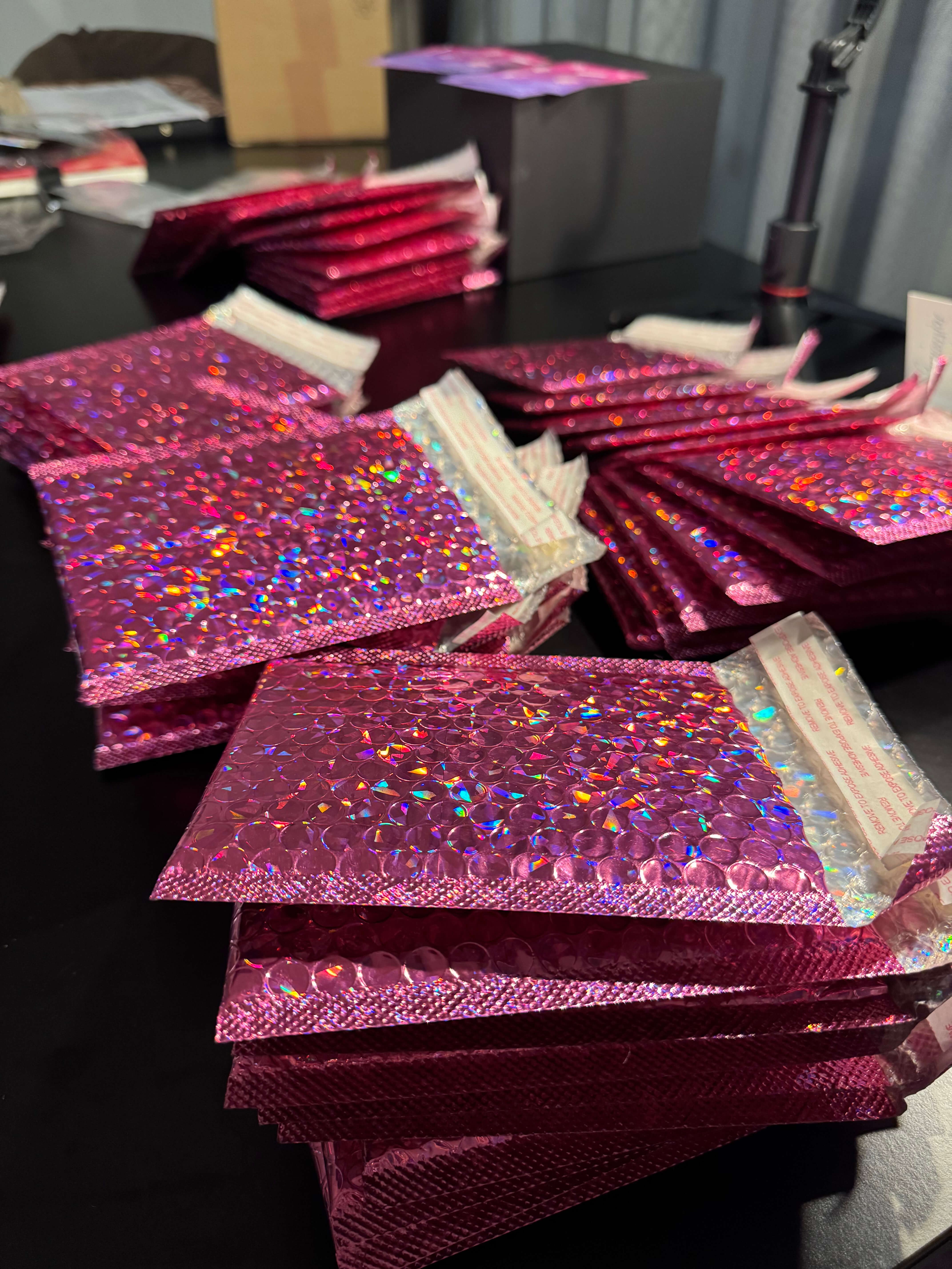 🩷 4 waterproof skirtingai žibantys ir skirtingo dydžio lipdukai, kurti su dizainere, atspindintys mano vertybes ir siekius